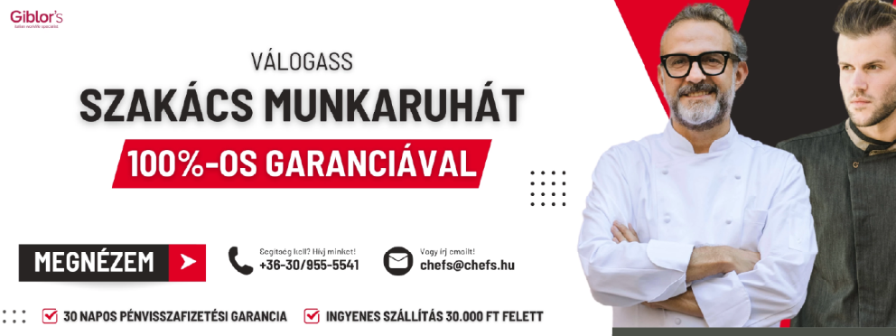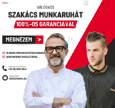 Üdvözlünk az ország egyik legnagyobb szakács, cukrász és felszolgáló munkaruha és kiegészítő webáruházában! Nálunk, a Chefs.hu-nál a legfontosabb Te vagy már 2008 óta és nem titkolt célunk, hogy a legnagyobb elégedettséggel és kényelemmel viseld munkaruhád és használd munkaeszközeid. Amennyiben eleged van a silány minőségű termékekből, a legjobb helyen jársz, webáruházunkban és üzletünkben csakis ellenőrzött minőségű termékeket forgalmazunk!