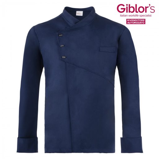 Divatos, sötétkék színű, patenttal záródó szakácskabát, az olaszországi, prémium minőségű szakácsruha gyártó GIBLOR'S-tól.