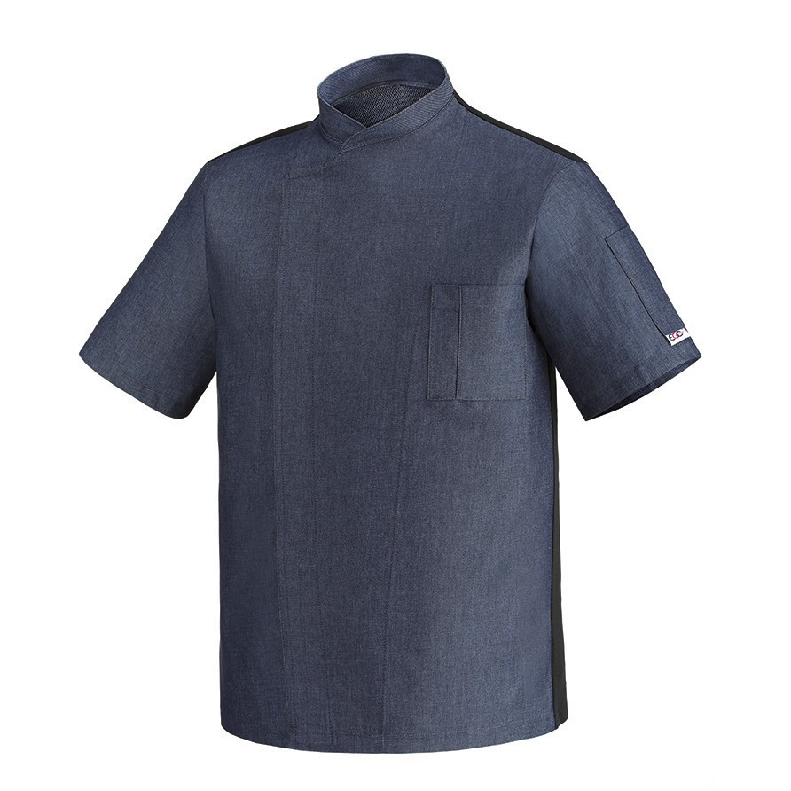 Szakácskabát - farmer anyagú, patentos, hálós hátú, rövid ujjú Szakácskabát - farmer anyagú, patentos, hálós hátú, rövid ujjú Szakácskabát - farmer anyagú, patentos, hálós hátú, rövid ujjú