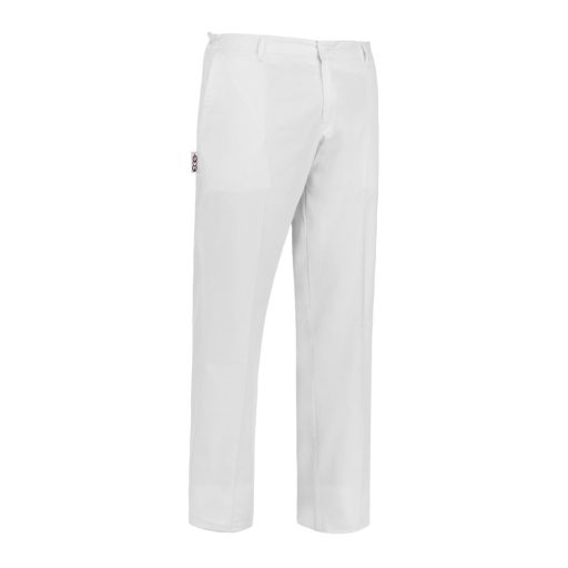 Fehér, gombos derekú, cipzáros szakács- vagy cukrásznadrág, oldalán két svéd-, jobb oldalt hátul pedig egy darab rávarrt zsebbel.