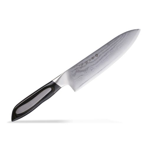 Tojiro Flash DP Damascus Szakácskés 18 cm hosszú damaszkacél pengével, laminált markolattal.