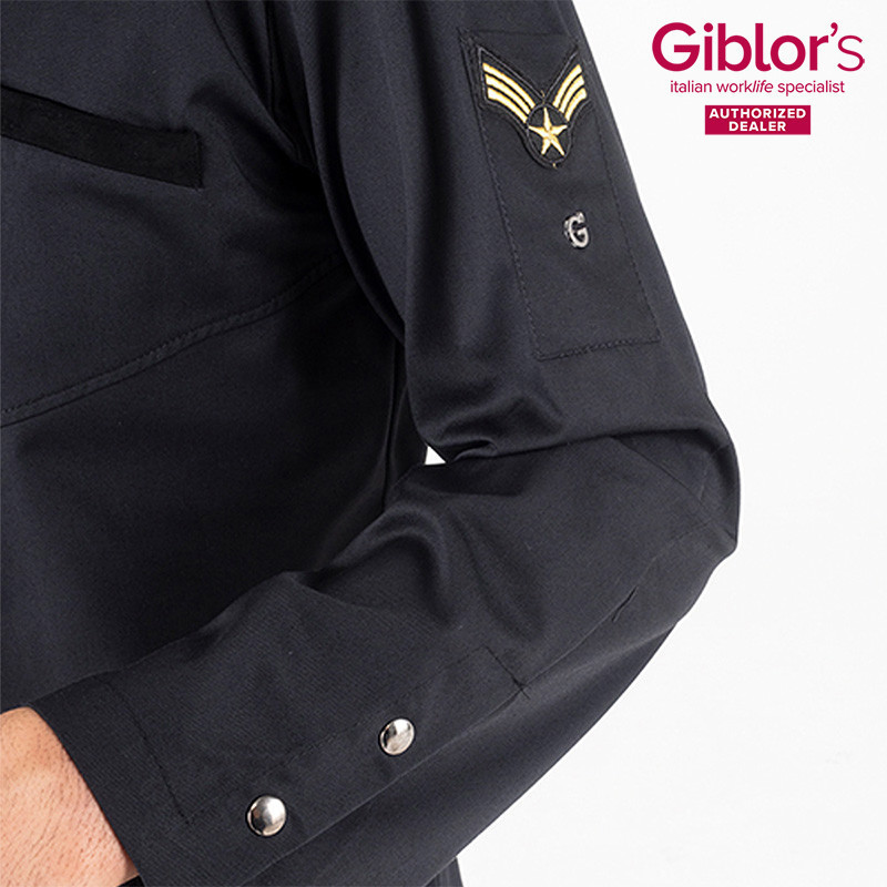 Gyönyörű szép, modern megjelenésű szakácskabát az olaszországi Giblors cég 2020-as katalógusából. Bal mellrészen egy rejtett zsebbel, bal karon egy tollzsebbel rendelkezik. A karok alsó részén és a hát két oldalán Airweb szellőző betétekkel a szellőzés könnyebb mozgás érdekében.