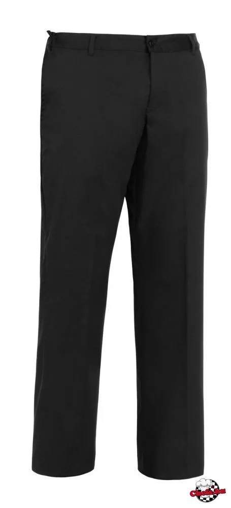 Gombos-cipzáras kivitelű szakácsnadrág kétoldalt kicsi gumi betoldással, két oldalzsebbel és egy farzsebbel a jobb oldalon.