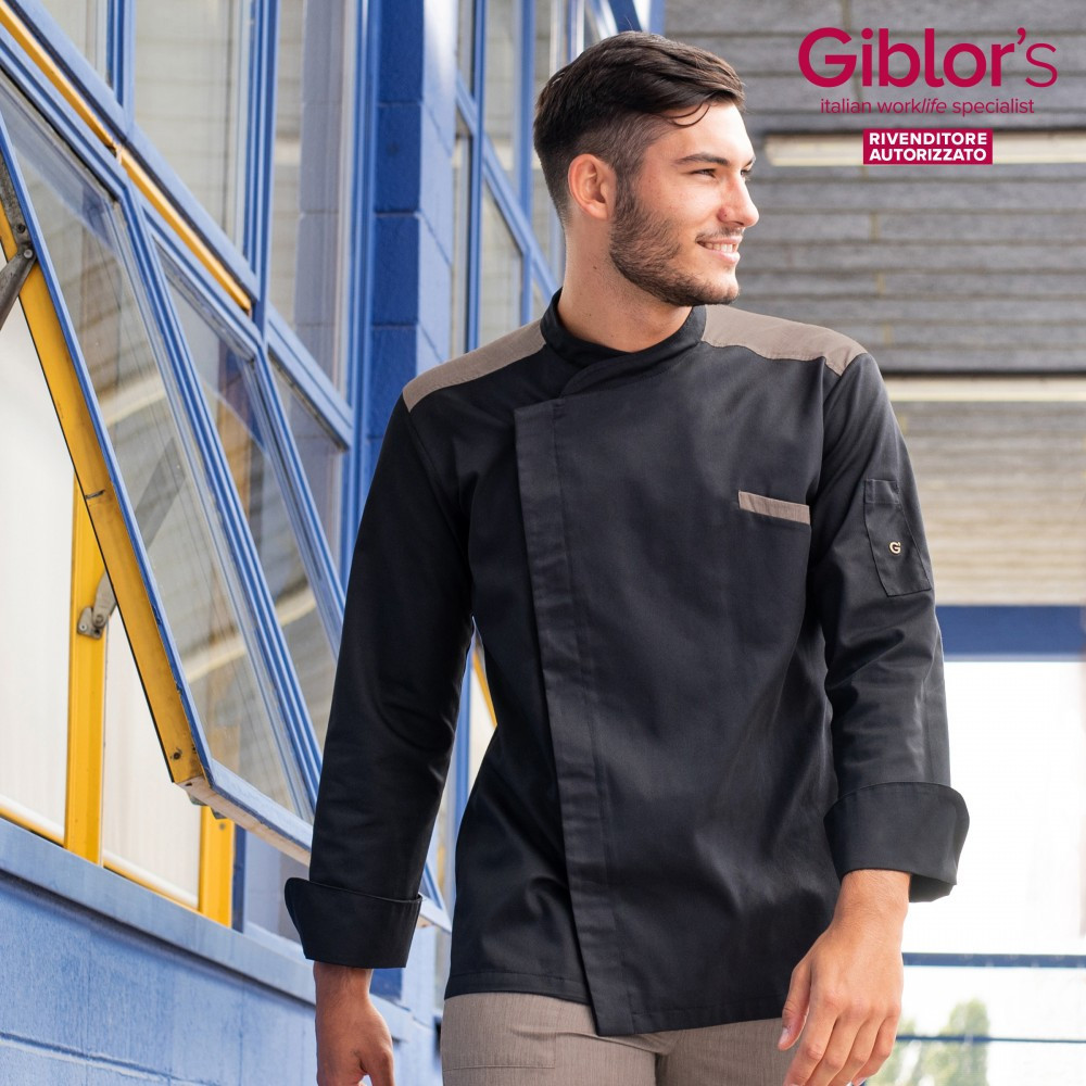 Vulcano -fekete hosszú ujjú szakácskabát