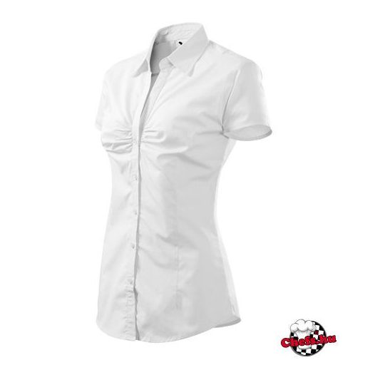 Finom anyagból készült női rövid ujjú ing. Karcsúsított szabása a női vonalakat hangsúlyozza.