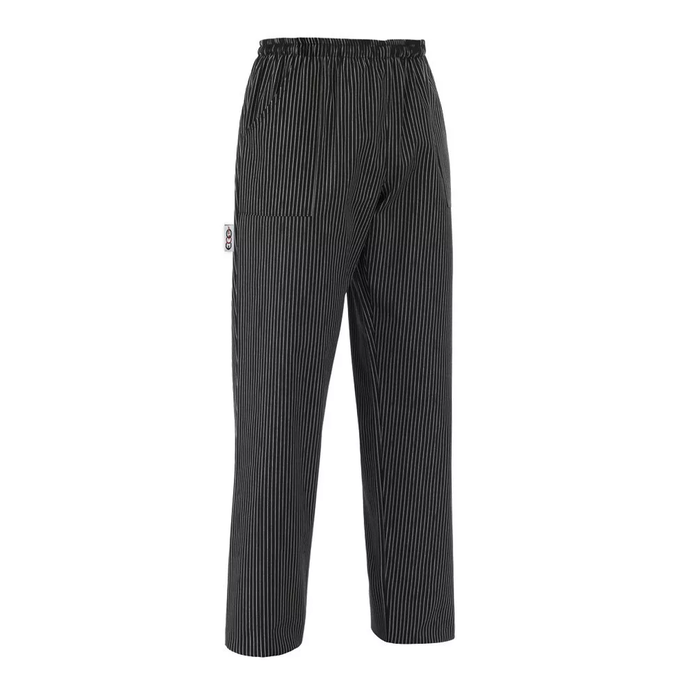 Vékonycsíkos, rávartzsebes, gumisderekú szakácsnadrág