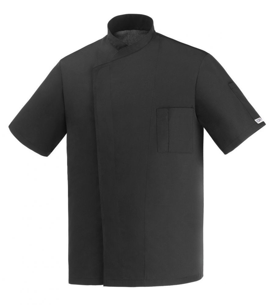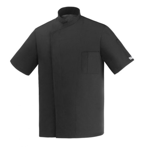 Fekete színű, rövid ujjú szakácskabát szellőző hátrésszel, 100% mikroszálas anyagból.