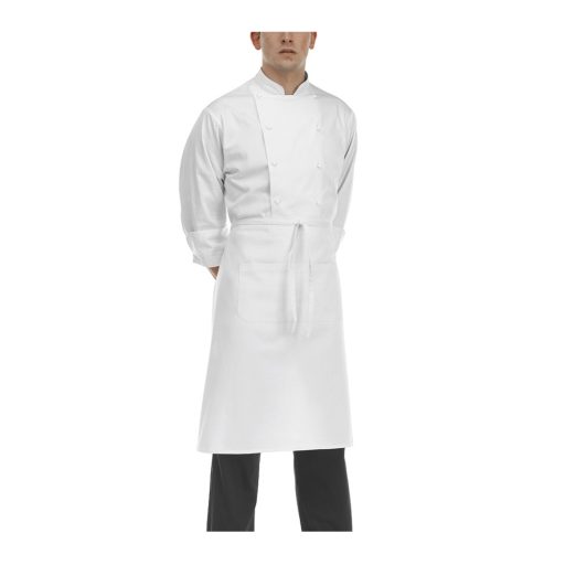Derékra köthető szakácskötény elöl egy osztott zsebbel.