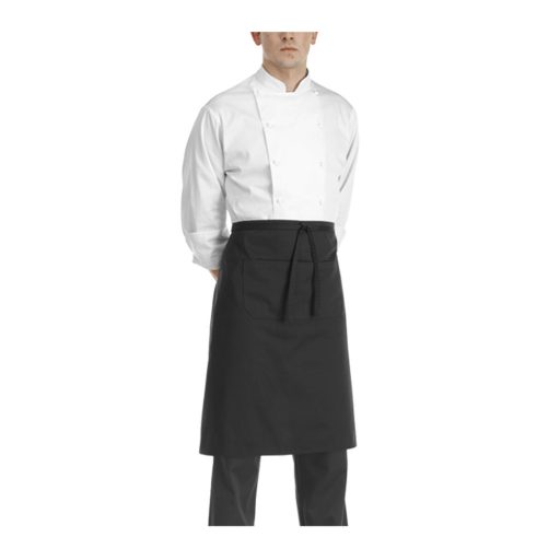 Szakácskötény fekete, dupla zsebbel