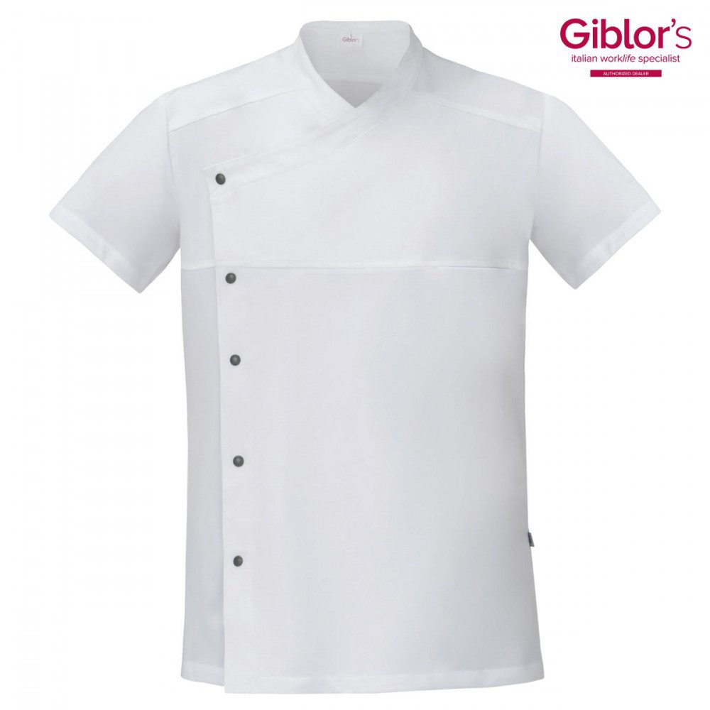 Fehér, patentos, rövid ujjú szakácskabát a méltán híres olaszországi munkaruha gyártó GIBLOR'S cégtől.
