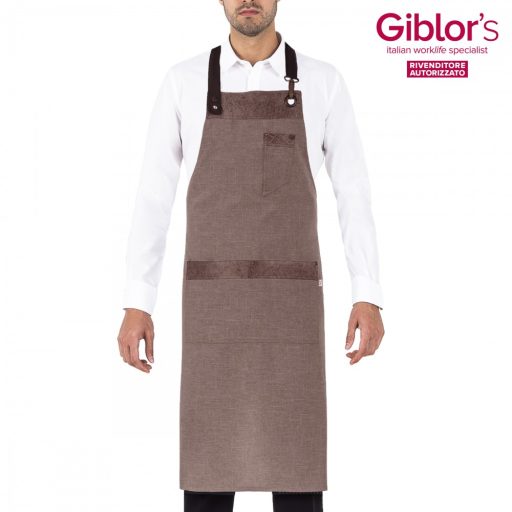 Fashionable, brown bib apron made by GIBLOR'S Italian premium quality chef workwear manufacturer..
