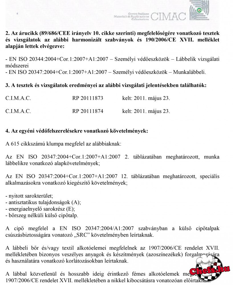 Hirsch minősített munkavédelmi klumpa - minősítése a képek között található.