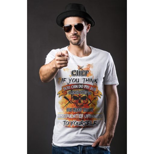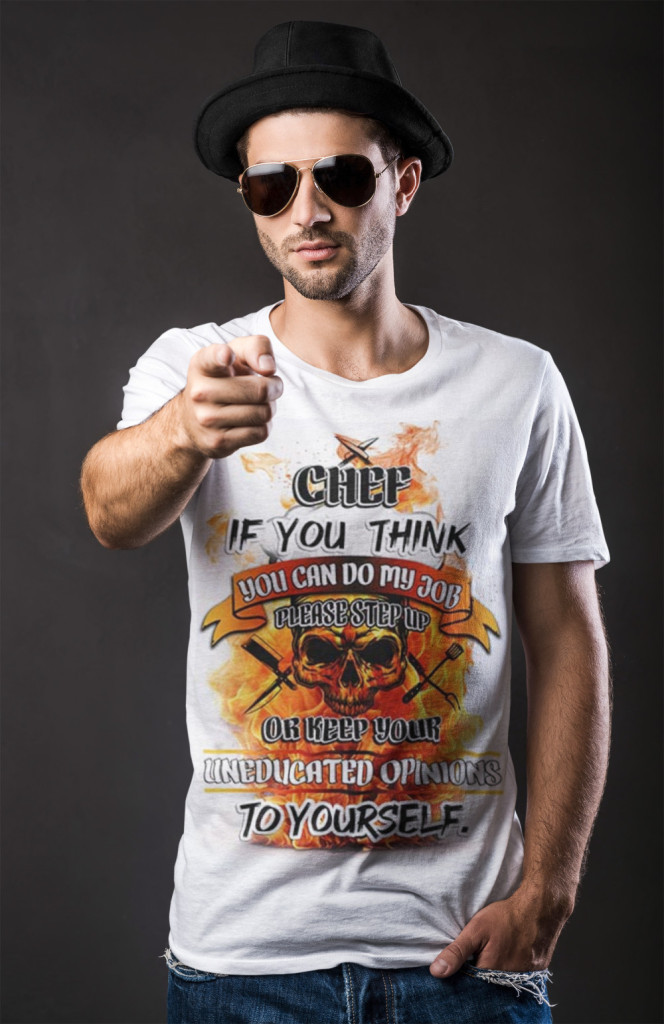 A póló szövege: " Ha úgy gondolod, hogy meg tudod csinálni a munkám, akkor gyere,  vagy tartsd meg magadnak a tanulatlan véleményed! "