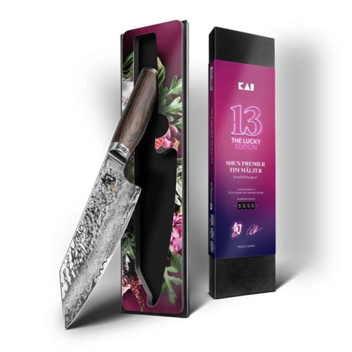 Japánban, ahol a KAI otthona van, a „13“ számot is szerencseszámnak tartja. Ebből az okból Tim Mälzer és a KAI úgy döntött, hogy a sikeres 13 éves együttműködésük évfordulóján egy különleges kiadást adnak ki, amely tiszteletet mindazoknak, akik a rajongók és a hűséges támogatók voltak. Az 5.555 darabból álló korlátozott kiadású kis 6” Kiritsuke pengével a SHUN Premier Tim Mälzer sorozat egy új, exkluzív és nagyon kívánatos gyűjteményi darabbal bővül 2023-ban.