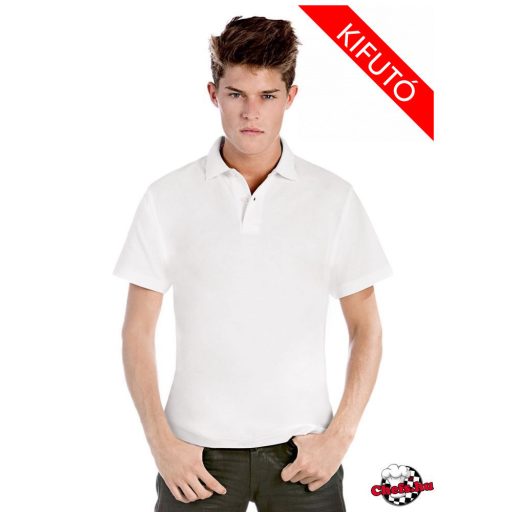 Elegáns, fehér, galléros, pamut póló, a póló színével megegyező színű gombokkal.