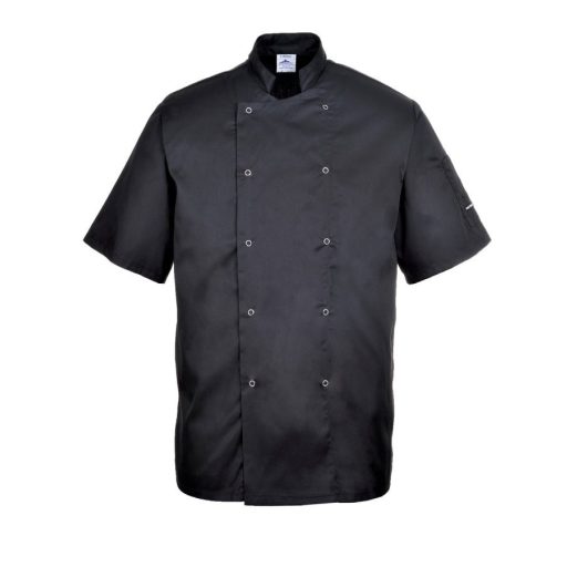 Szakácskabát - fekete, rövid ujjú, kétsoros patentos