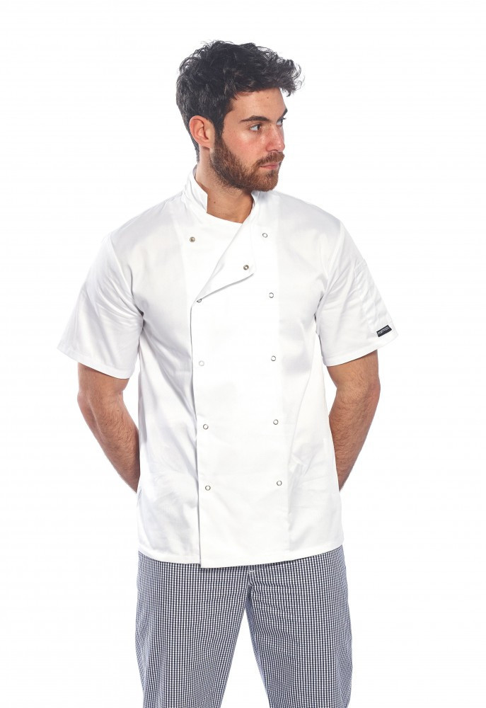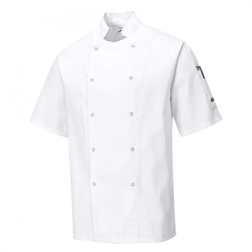 Szakácskabát - fehér, rövid ujjú, kétsoros patentos