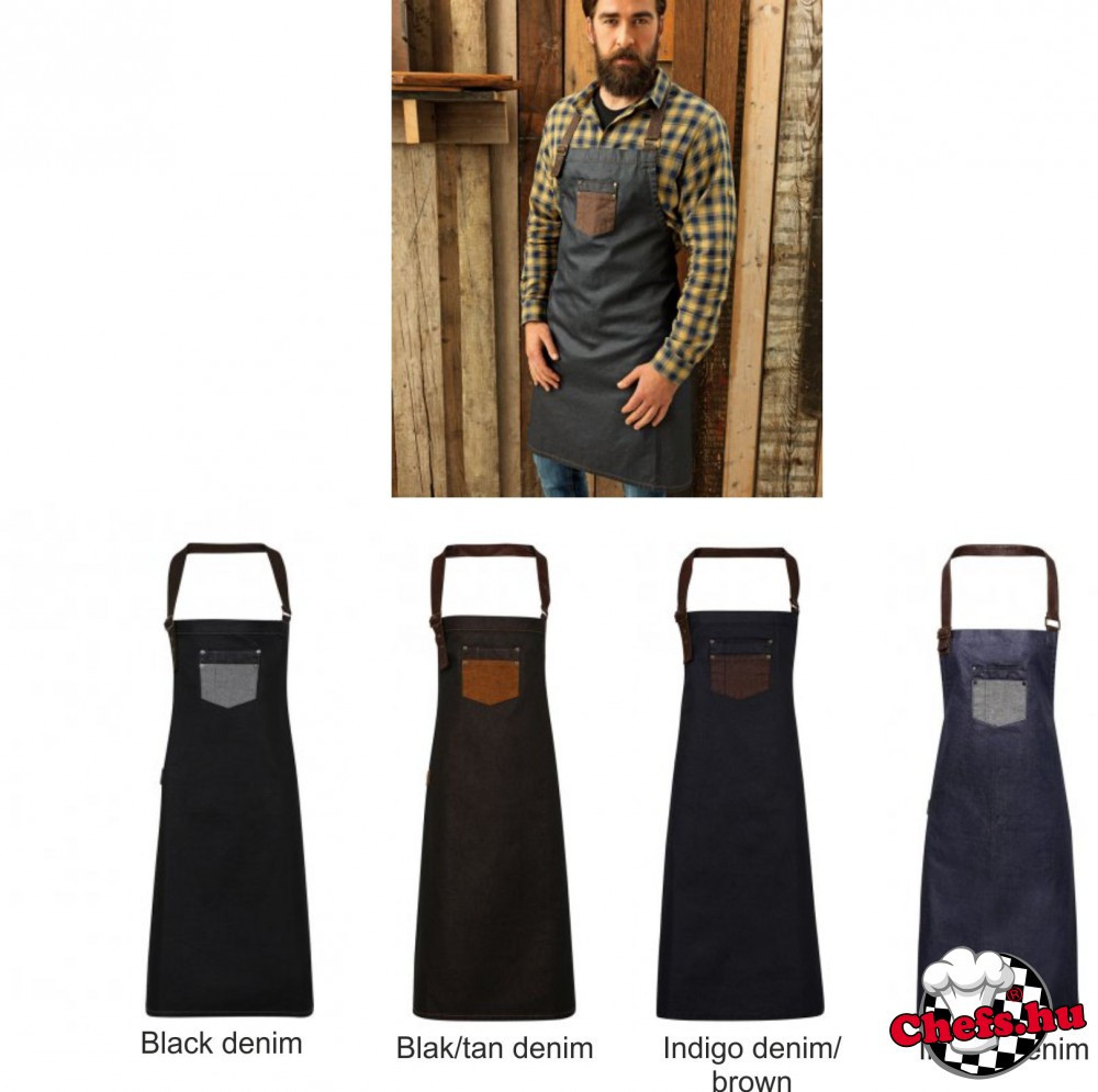 Négyféle színállásban kapható farmer, víztaszító, melles kötény, Indigo Denim