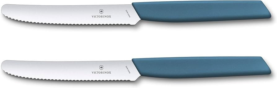 A Swiss Modern kollekció késszettje egyesíti a modern dizájnt és a professzionális teljesítményt. A hullámos élű, rozsdamentes acél pengék borotvaélesek, és könnyedén siklanak át paradicsomon, paprikán vagy akár citrusféléken is – anélkül, hogy roncsolnák a héjat.