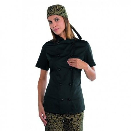 Női szakácskabát - fekete, rövid ujjú, fekete színű kivehető gombokkal Női szakácskabát - fekete, rövid ujjú, fekete színű kivehető gombokkal