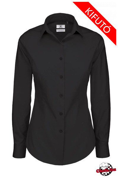 Női hosszú ujjú blúz - fekete, B&C sztreccs puplin