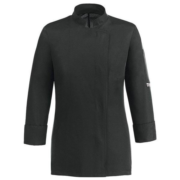 Női szakács kabát - fekete, hosszú ujjú, patentos
