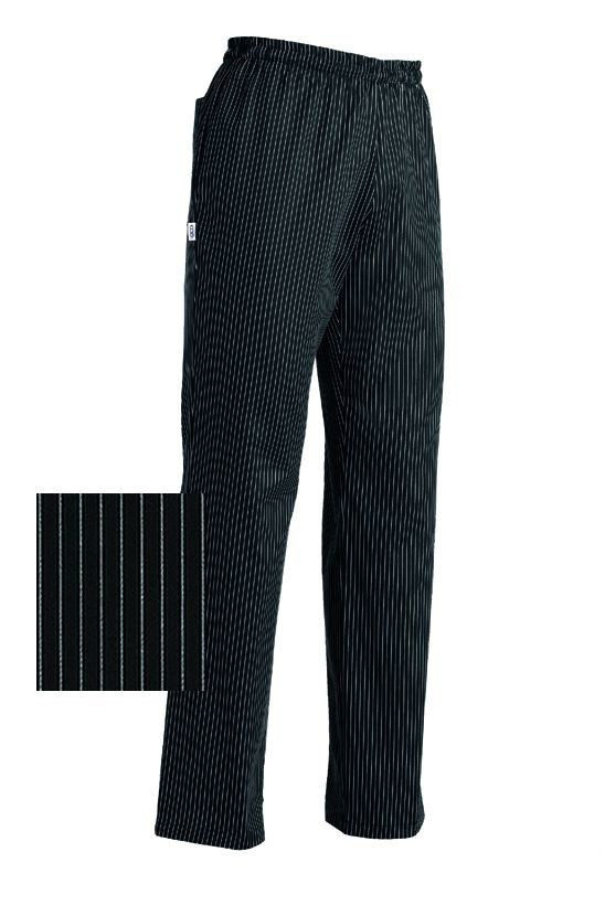 Szakácsnadrág - vékony csíkos, 100% pamut, gumis derekú