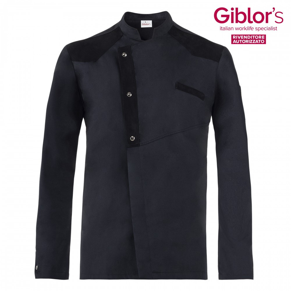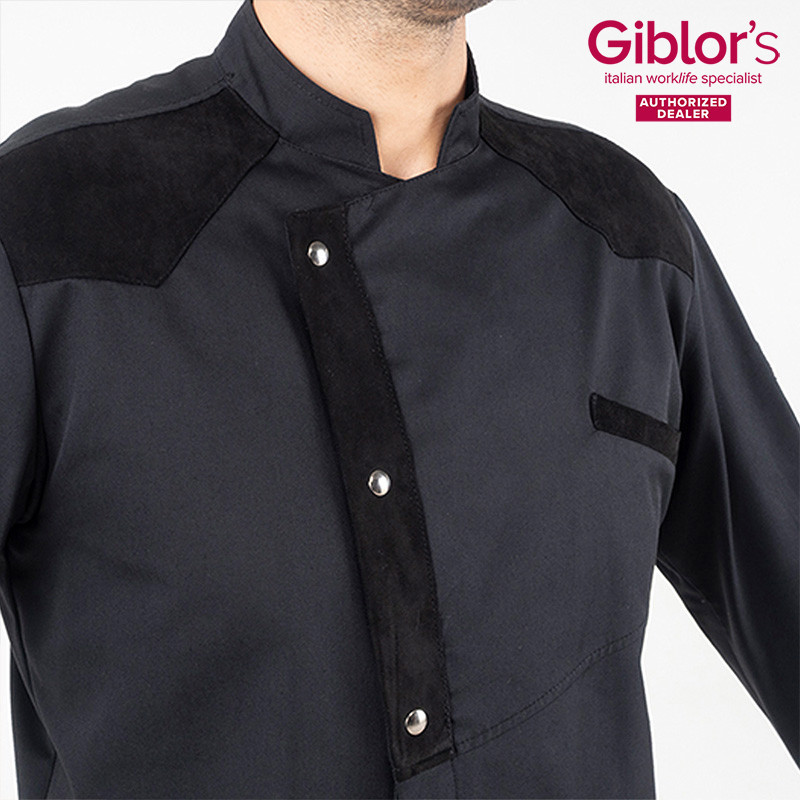 Gyönyörű szép, modern megjelenésű szakácskabát az olaszországi Giblors cég 2020-as katalógusából. Bal mellrészen egy rejtett zsebbel, bal karon egy tollzsebbel rendelkezik. A karok alsó részén és a hát két oldalán Airweb szellőző betétekkel a szellőzés könnyebb mozgás érdekében.