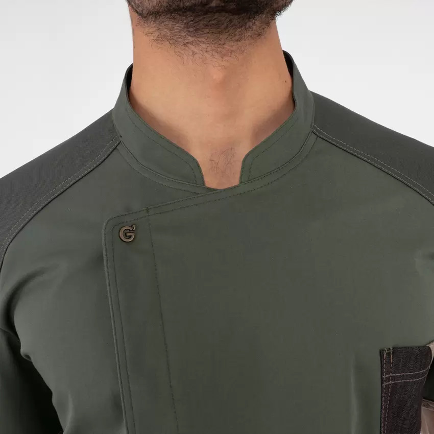 GIBLORS Nathan Militari zöd pamut-elasztán szakácskabát