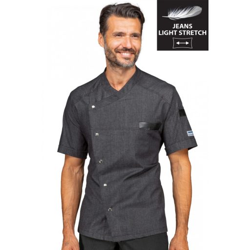 Sztreccses anyagú fekete színű farmer szakácskabát Sztreccses anyagú fekete színű farmer szakácskabát